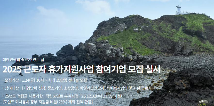 중요한 건 회사 단위로 신청해야 한다는 점이에요. 개인이 직접 신청하는 게 아니라, 소속 기업이 참여 신청을 하고, 그 안에서 근로자 휴가 신청을 하는 구조예요.