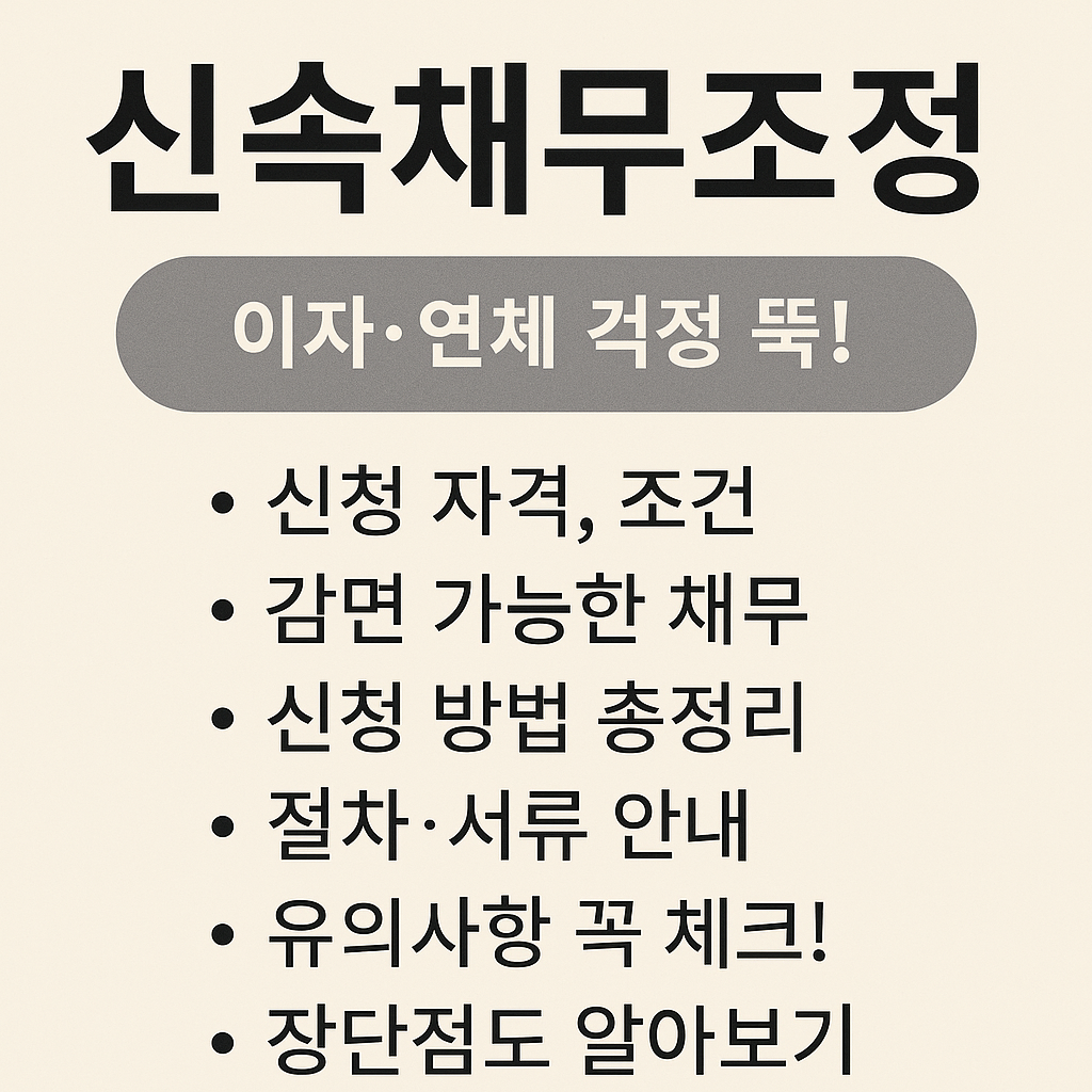 대출·카드대금으로 불안하셨나요? 신속채무조정은 연체 전~30일 이하 채무자를 위한 공적 제도로, 이자 감면과 상환 유예, 채권추심 중단까지 지원합니다. 이 글에서 대상, 절차, 최신 혜택, 주의사항까지 하나하나 정리해 드릴게요.